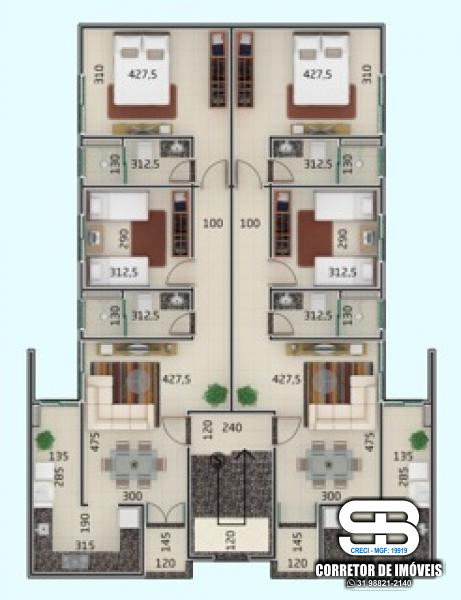 ***APARTAMENTOS COM: SALA, COPA, COZINHA,ÁREA DE SERVIÇO, 1 SUÍTE, 1 QUARTO, BANHEIRO SOCIAL E GARAGEM.